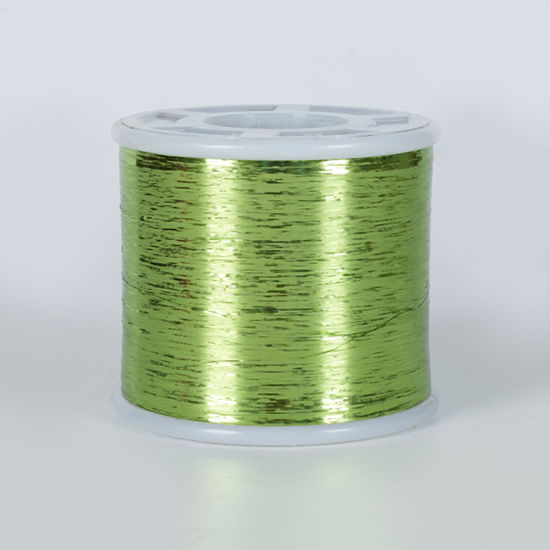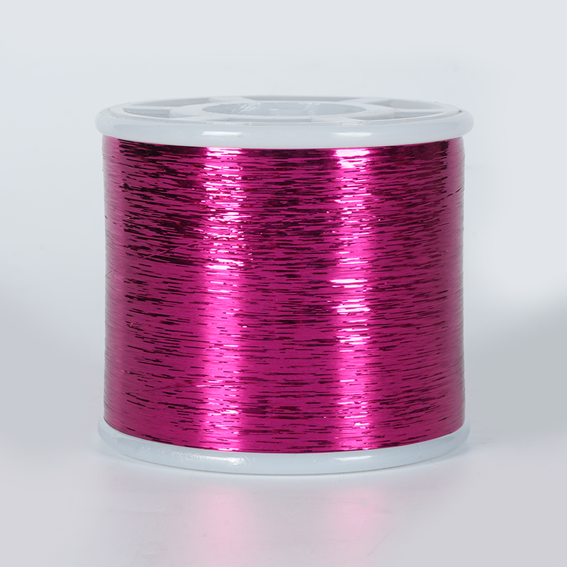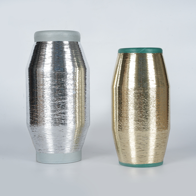 金属化ポリエステルフィルム(アルミニウム金属化または純粋な銀の金属化および保護エキストキシ樹脂コーティング)でシルした金属糸は、ポリエステルまたはナイロンフィラメント糸でねじれました。この糸の専門性はスーパーファインで、とても柔らかく感じます。高品質の生地、衣類の装飾、ニットウェア、ソックスクラフトECT.で広く使用されています。